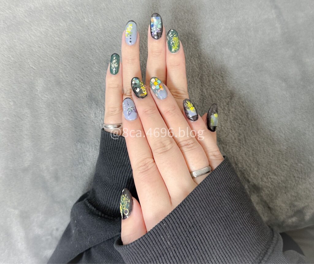 つるっと、ちゅるんとした感じにさせるのはまだまだ難しいけれど、思いつくままにペタペタやっていくことができるのがセルフネイルの楽しいところだと思うのである。昔はセルフオフで大失敗してしまい、指先ごとボロボロにして、ネイルもできないし生爪も甘皮も痛いしで数ヶ月地獄を味わって以来、ずっとサロンに任せることにしていた。けれど今、マシンも集塵機も手ごろな値段で買えるようになって、オフができるようになったら今度は100均でもカラージェルが手頃に買えることを知り、地爪をなるべく傷めないように、フィルインができるちょっとお高めのベースを揃えたりして、どんどんいつの間にか立派にセルフネイラーになっておりましたとさチャンチャン