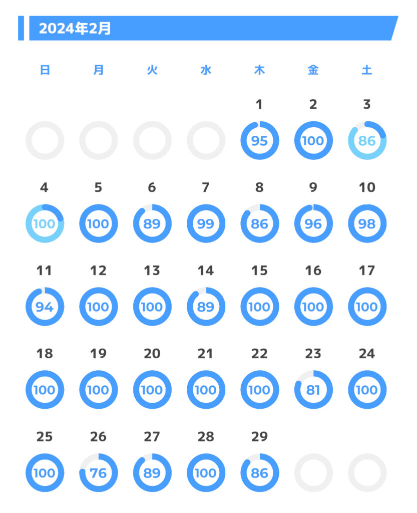 ちなみに私の睡眠記録(2024年2月)が以下のような感じ。